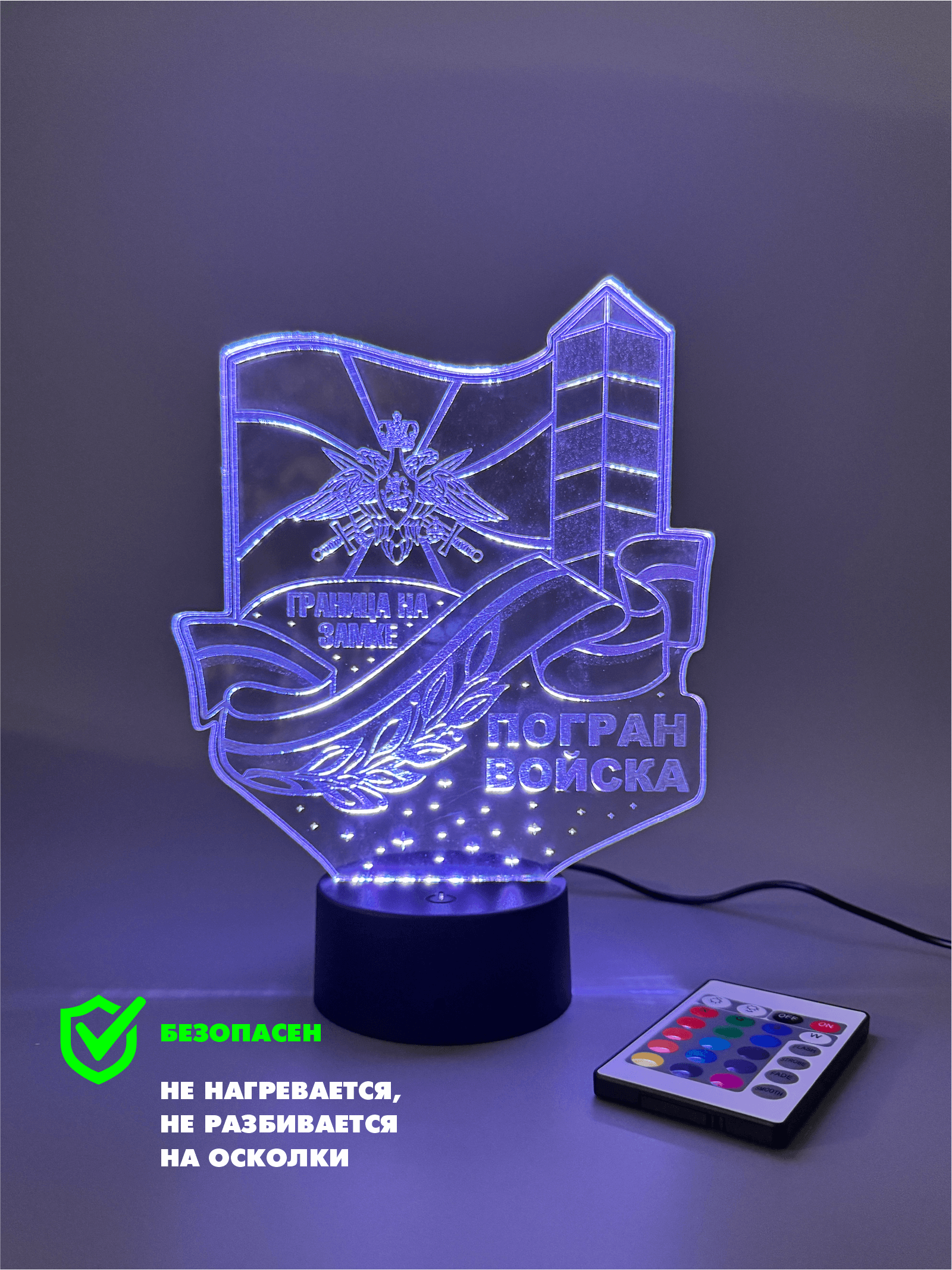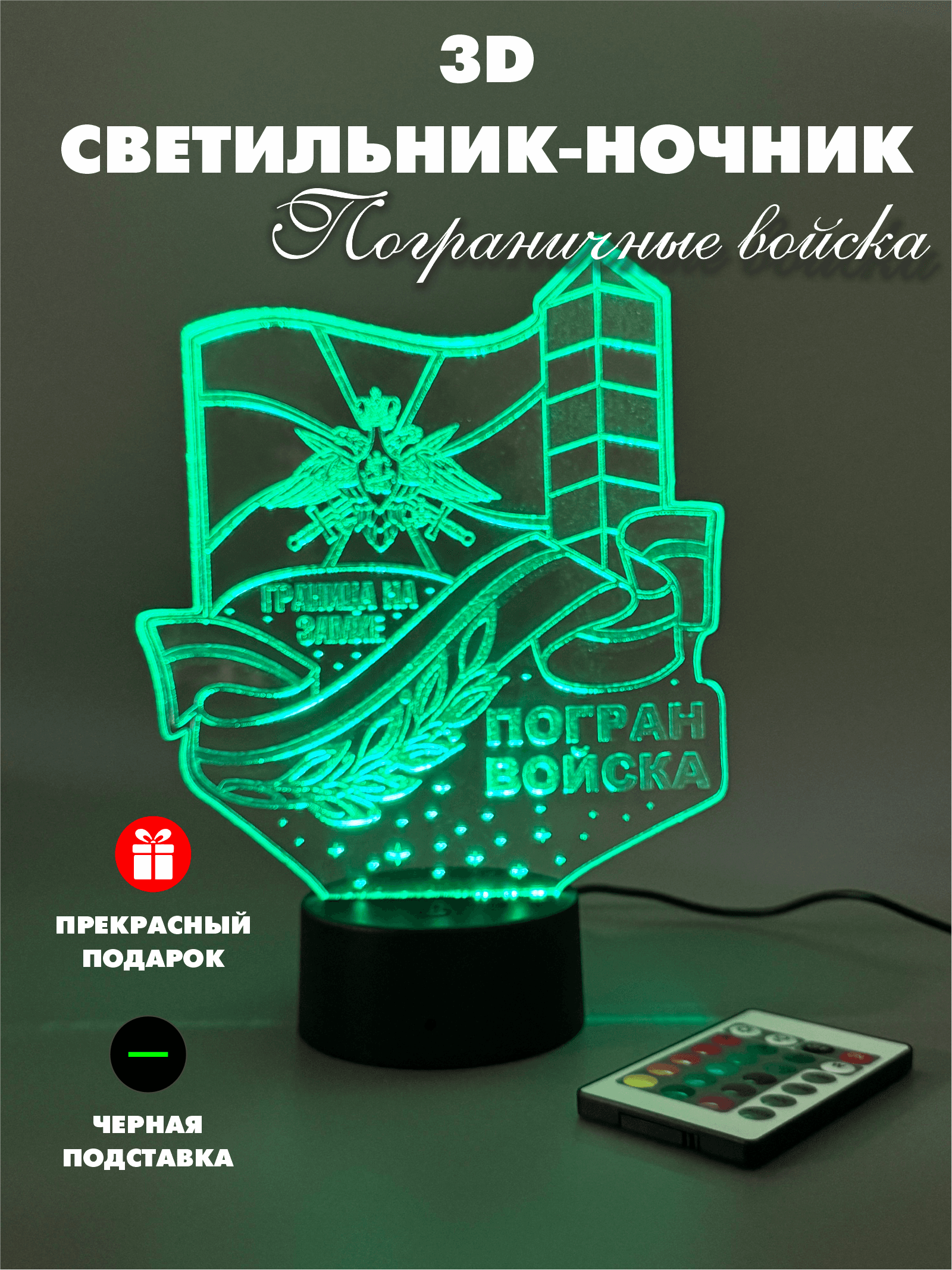 3Д Светильник подарок военному на 9 мая / День пограничника 3D Светильник: Создайте Уникальную Атмосферу в Вашем Пространстве! Вас привлекает мир света и тени? Тогда наш 3D светильник станет идеальным дополнением для вашего интерьера! Этот стильный и инновационный аксессуар не только наполняет комнату мягким светом, но и создает эффектные 3D-иллюзии, которые удивят вас и ваших гостей. Почему стоит выбрать наш 3D светильник? - Удобство использования: Светильник легко включается и выключается, а также имеет несколько режимов яркости. Вы можете настроить его в зависимости от вашего настроения или времени суток. - Подарок с душой: Прекрасный вариант для подарка на день рождения, Новый год или любой другой праздник. 3D светильник станет оригинальным подарком, который оценит каждый любитель стиля и комфорта. Не упустите возможность преобразить ваше пространство с помощью нашего 3D светильника! Закажите сейчас и наслаждайтесь уникальным освещением в вашем доме, которое станет не только функциональным аксессуаром, но и стильным элементом декора. Создайте атмосферу, в которой хочется проводить время! Комплектация Пластина - 1 шт.; световая подставка - 1 шт., пульт ду - 1 шт., провод USB - 1 шт.; упаковочная коробка - 1 шт.