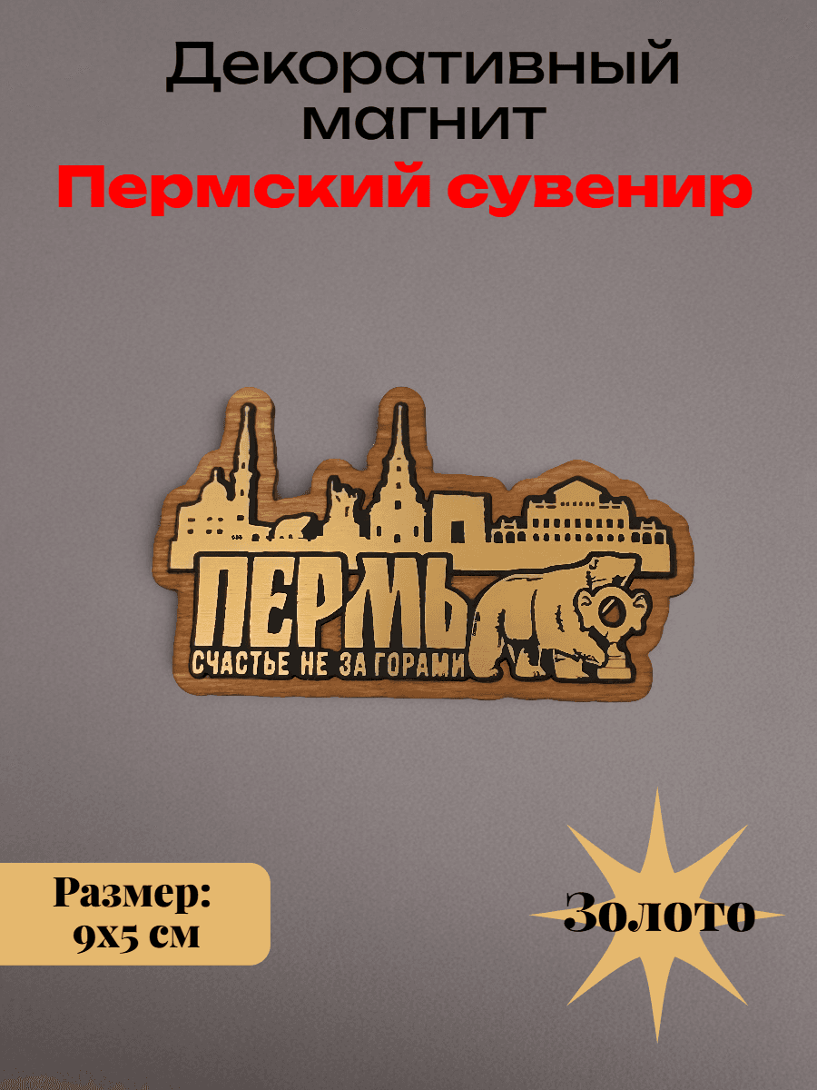 екоративный магнит «Золотая Пермь» от ЛАЗЕРМАГ Элегантное изделие ручной обработки сочетает натуральное дерево и благородный золотой оттенок, создавая стильный элемент оформления интерьера. Компактная форма идеально подходит для хранения записочек, фото или заметок на холодильнике. Каждый магнит выполнен с высокой точностью методом лазерной гравировки, передающей символику города. Прочный материал обеспечивает долгий срок службы даже при ежедневном использовании. Отличный выбор для тех, кто ценит минимализм и культурную аутентичность в бытовых предметах.дополнение коллекции региональных сувениров или оригинальный подарок для друзей и близких.*