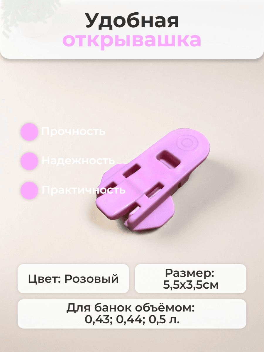 Эта удобная и стильная открывашка для алюминиевых банок станет незаменимым помощником на вашей кухне. Ее яркий цвет добавит нотку свежести в интерьер, а прочная конструкция гарантирует долгий срок службы. Открывашка легко справляется с любыми алюминиевыми банками, экономя ваши время и силы. Теперь открывать банки будет еще проще и приятнее!