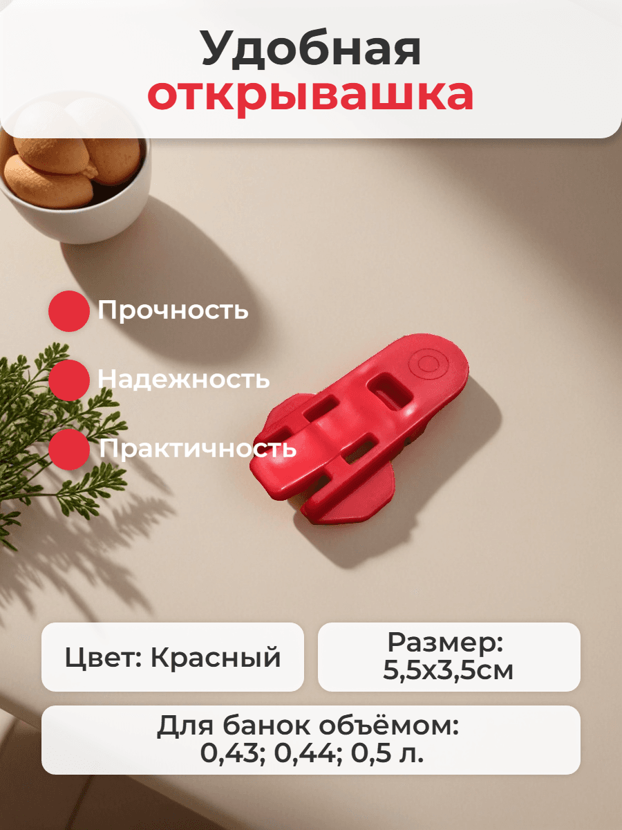 Эта удобная и стильная открывашка для алюминиевых банок станет незаменимым помощником на вашей кухне. Ее яркий цвет добавит нотку свежести в интерьер, а прочная конструкция гарантирует долгий срок службы. Открывашка легко справляется с любыми алюминиевыми банками, экономя ваши время и силы. Теперь открывать банки будет еще проще и приятнее!
