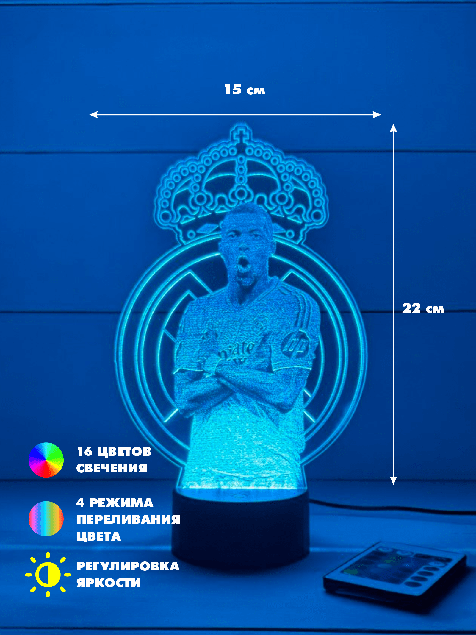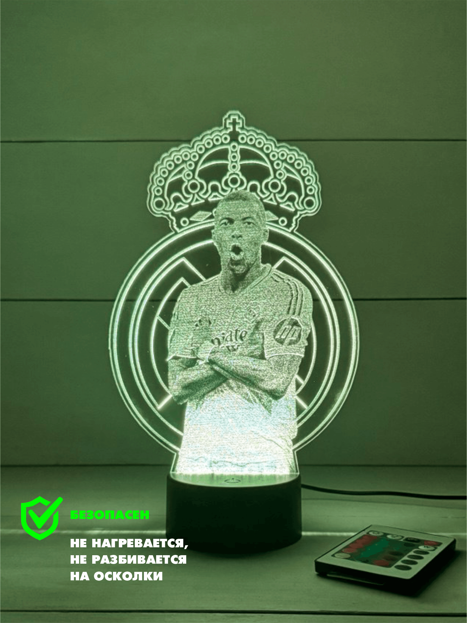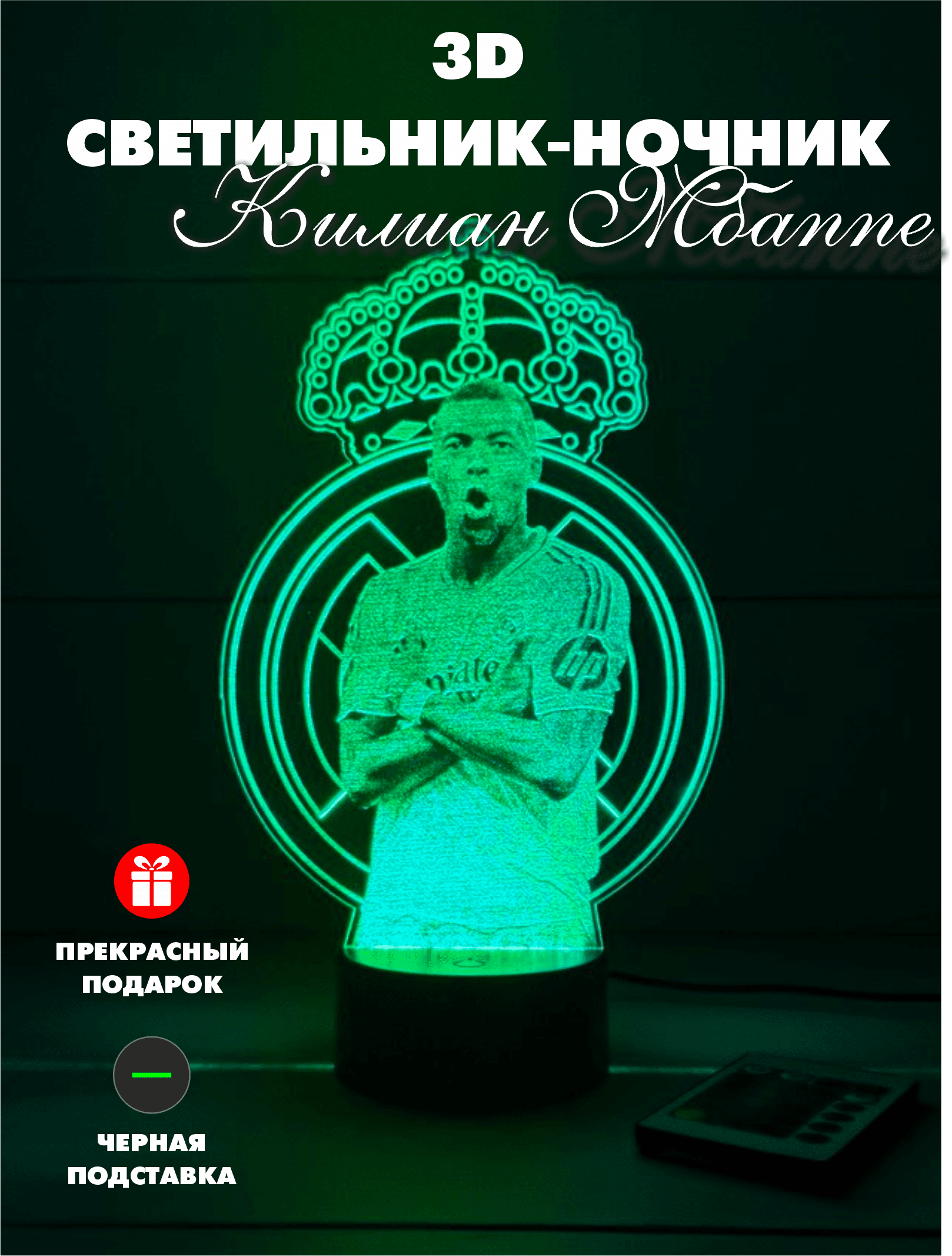 3D Светильники Fc Real Madrid / Килиан Мбаппе 3D Светильник: Создайте Уникальную Атмосферу в Вашем Пространстве! Вас привлекает мир света и тени? Тогда наш 3D светильник станет идеальным дополнением для вашего интерьера! Этот стильный и инновационный аксессуар не только наполняет комнату мягким светом, но и создает эффектные 3D-иллюзии, которые удивят вас и ваших гостей. Почему стоит выбрать наш 3D светильник? - Удобство использования: Светильник легко включается и выключается, а также имеет несколько режимов яркости. Вы можете настроить его в зависимости от вашего настроения или времени суток. - Подарок с душой: Прекрасный вариант для подарка на день рождения, Новый год или любой другой праздник. 3D светильник станет оригинальным подарком, который оценит каждый любитель стиля и комфорта. Не упустите возможность преобразить ваше пространство с помощью нашего 3D светильника! Закажите сейчас и наслаждайтесь уникальным освещением в вашем доме, которое станет не только функциональным аксессуаром, но и стильным элементом декора. Создайте атмосферу, в которой хочется проводить время! Комплектация Пластина - 1 шт.; световая подставка - 1 шт., пульт ду - 1 шт., провод USB - 1 шт.; упаковочная коробка - 1 шт.