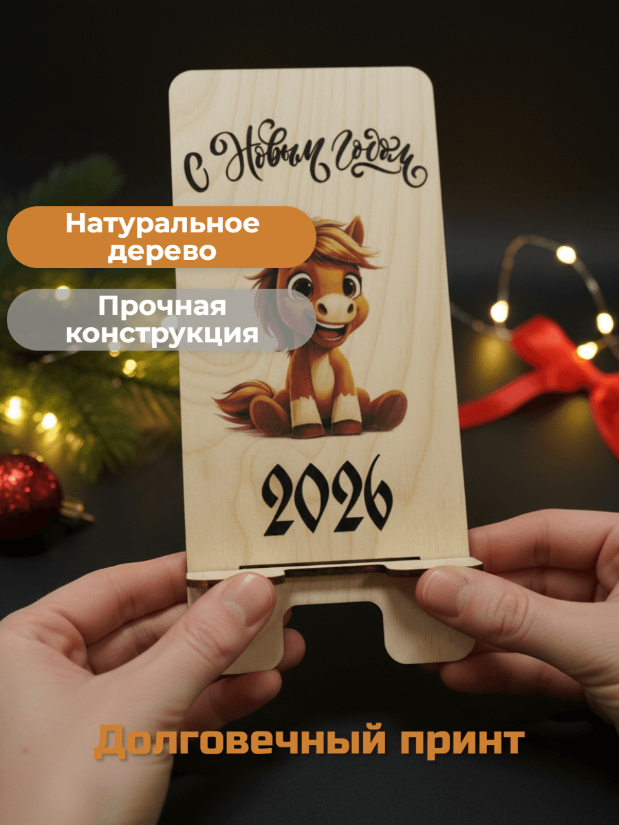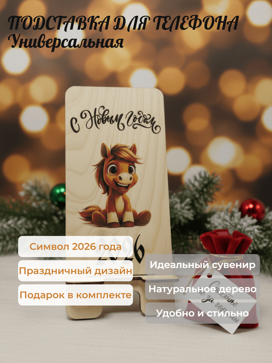 Подставка для телефона/ новогодний подарок - Элегантная подставка сочетает функциональность и праздничный дизайн с изображением символа года – лошади, станет ярким акцентом в интерьере - Компактная конструкция легко размещается на столе, поддерживает смартфон любого размера под оптимальным углом для просмотра - Изготовлена из прочных материалов, сохраняет форму даже при длительном использовании - Миниатюрная упаковка позволяет использовать изделие как оригинальный подарочный сувенир с зимней атмосферой - Отличный выбор для тех, кто хочет совместить практичность повседневного аксессуара с новогодним настроением #новогодний_подарок #сувенир #символ_года #лошадь_2026 #подставка_для_телефона
